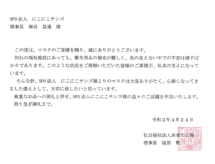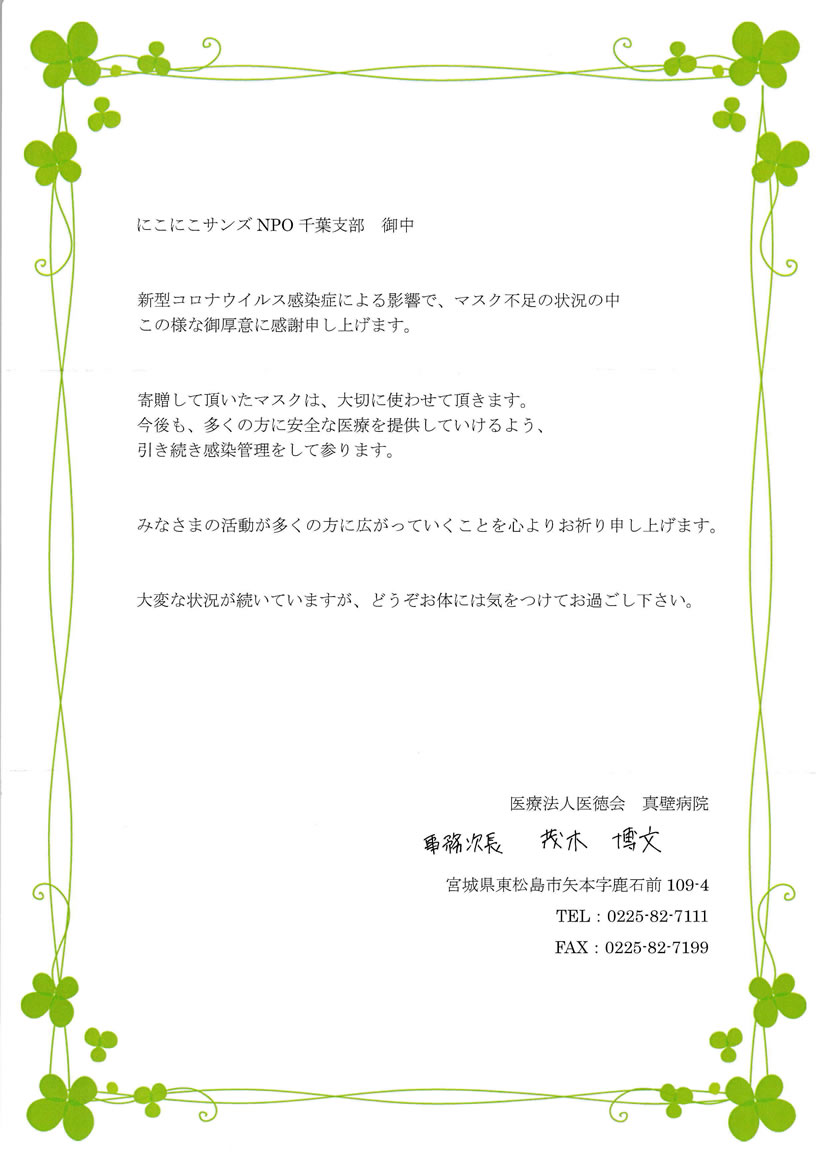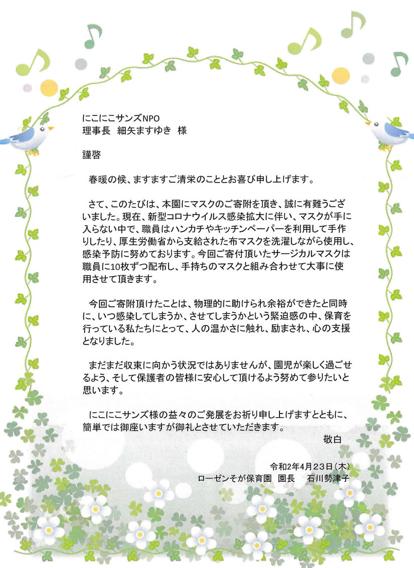 頂きましたお礼のお手紙を一部のみご紹介させていただきます。